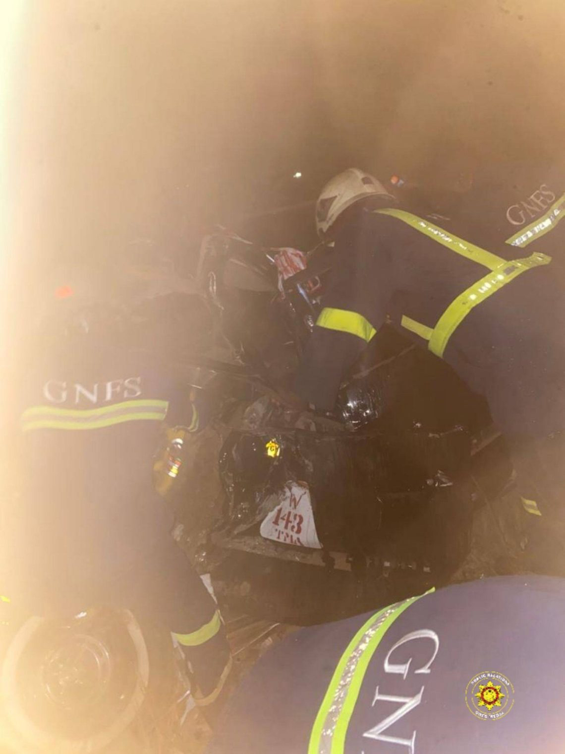 According to a statement issued by the Service, the Apam Fire Station received an emergency call at approximately 6:40 p.m. on Saturday, April 18, 2026, reporting a collision between a Kia Picanto with registration number GW 8314-21 and a Hyundai Rhino truck with registration number GJ 823-21.