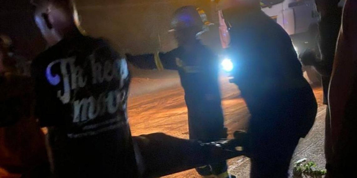 The rescue team successfully extricated the victim and transferred him to the Ghana National Ambulance Service for urgent medical attention at Saint Luke Hospital.