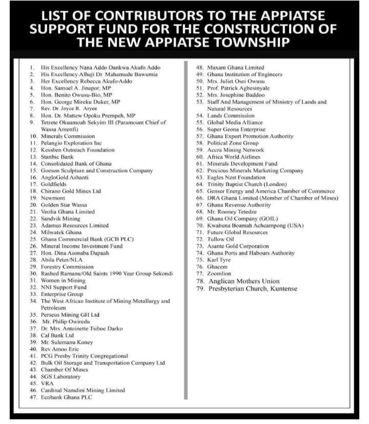 President Nana Akufo-Addo, Vice President Dr Mahamudu Bawumia and First Lady Rebecca Akufo-Addo lead the contributors list.