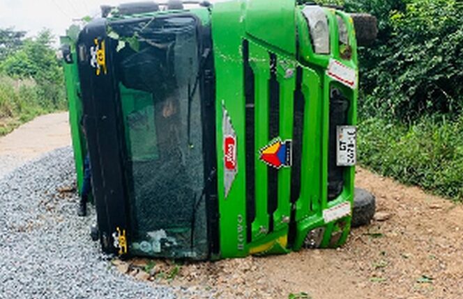 The vehicle with the registration number GT 3678-18, was carrying quarry dust and had two passengers on board.