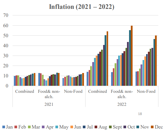 Ghana recorded an inflation of 54.1% in December 2022, after the nation’s economy went through troubling times due to debt default and a worsening fiscal economy. This the government blamed largely on the Russian/Ukraine war and the Covid-19 pandemic, though some economists and market watchers rubbished that position.