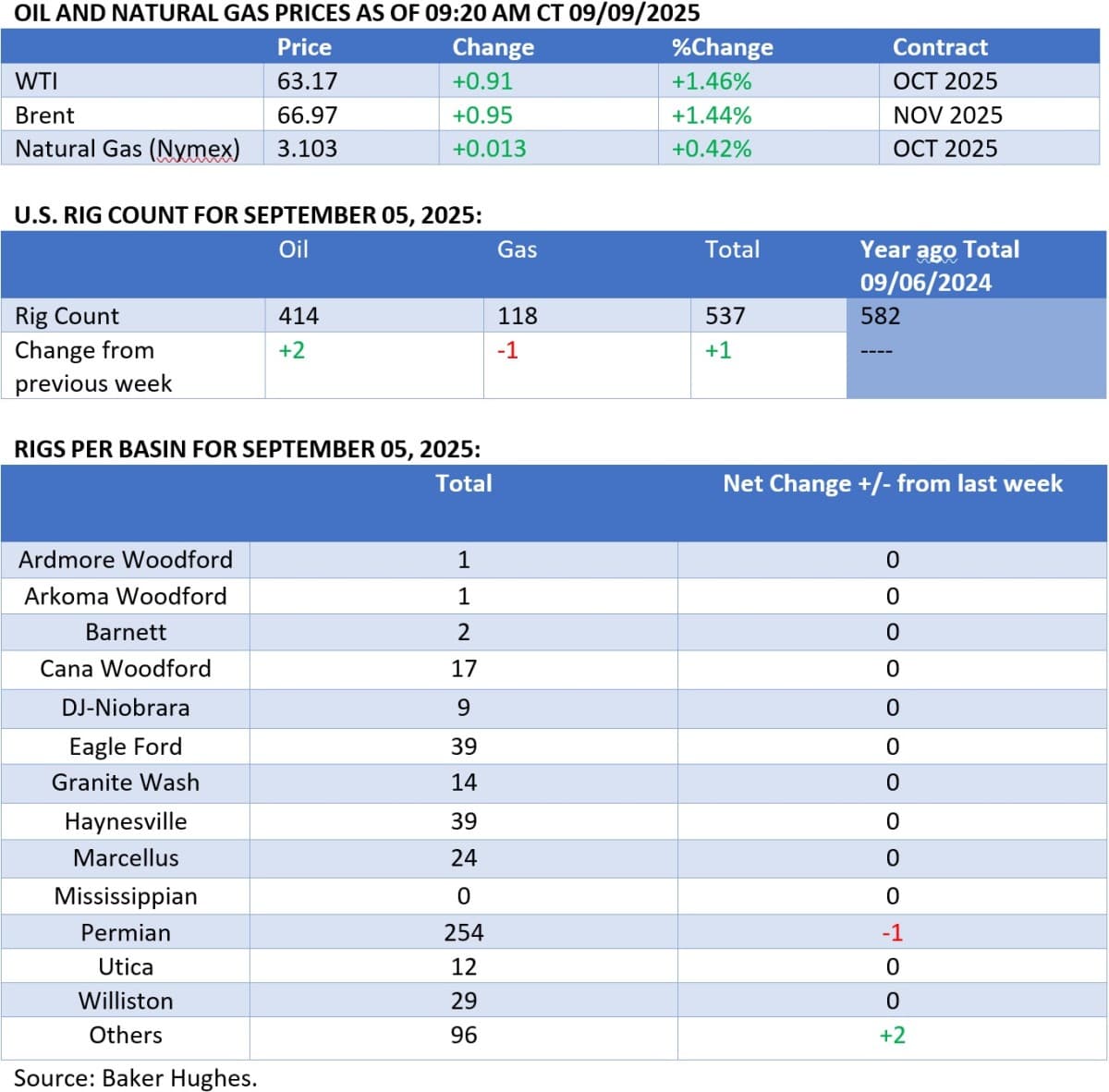 OPEC+ pulled off a deft bit of expectations management—letting chatter build around a large output hike, then delivering far less. Even with an extra ~137,000 b/d coming from the group, Brent has rebounded to around $66.50/bbl, and it briefly jumped above $67 after reports of a surprise Israeli strike on Hamas targets in Qatar. Near-term upside risk also lingers if President Trump follows through on renewed talk of Russia sanctions.