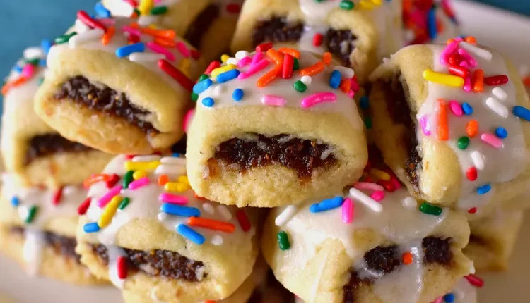 Roll out some dough (should be kind of thin). Spoon fig mixture in a line down the center. Wrap dough over mixture, sealing fig filling inside dough. Trim to desired length, using a diagonal cut. Make small diagonal slits in the sides of the cookies; arrange on an ungreased cookie sheet.