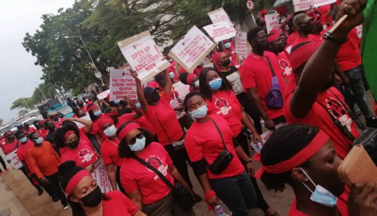 Aggrieved candidates, as well as their sympathisers, who sat for the 2021 Ghana School of Law entrance examination, have hit the streets over how some 499 candidates were denied entrance.