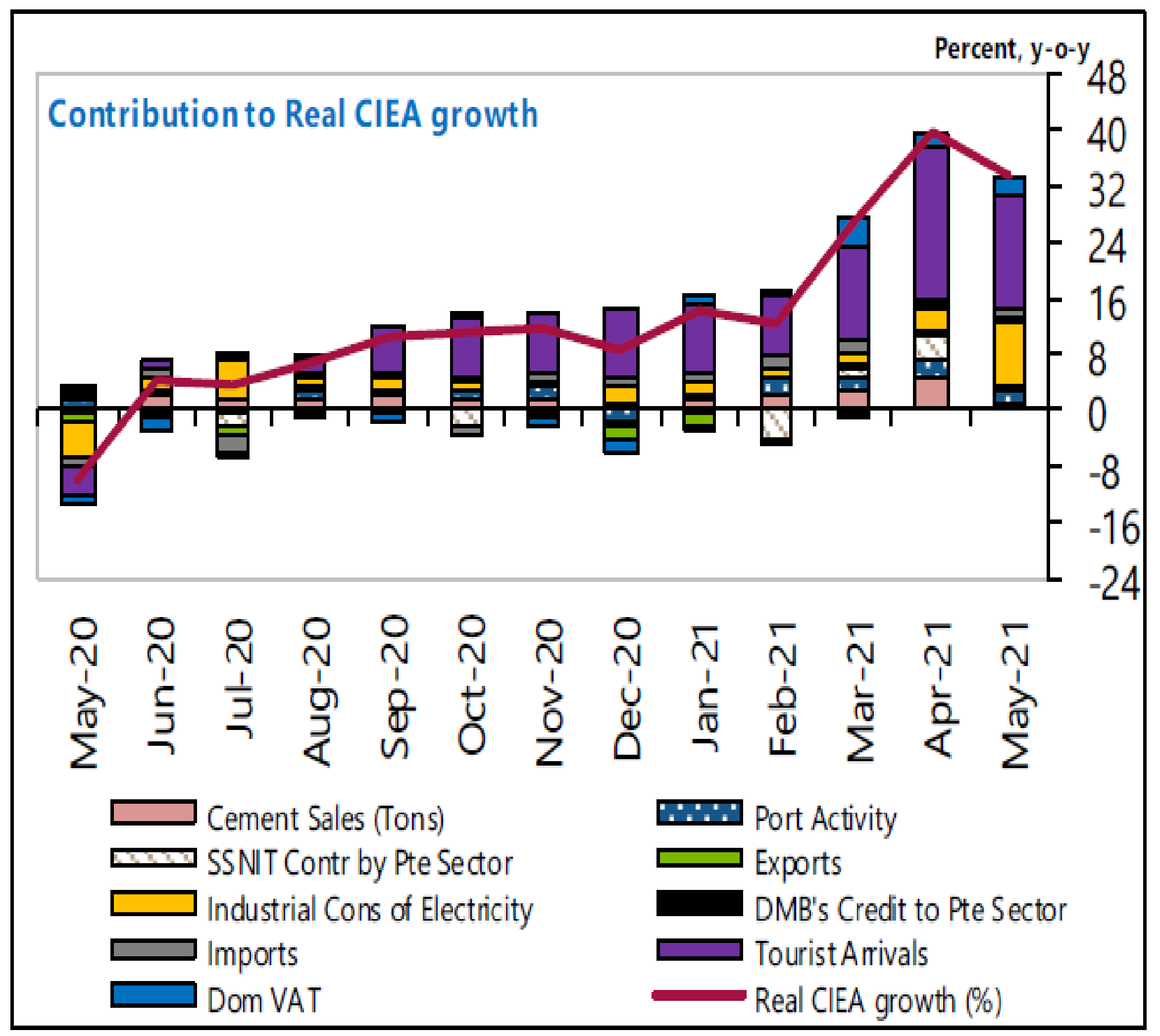 The index includes cement sales, Social Security and National Insurance Trust (SNNIT) contribution by the private sector, industrial consumption of electricity, domestic tax, imports, exports, port activity and tourist arrivals.