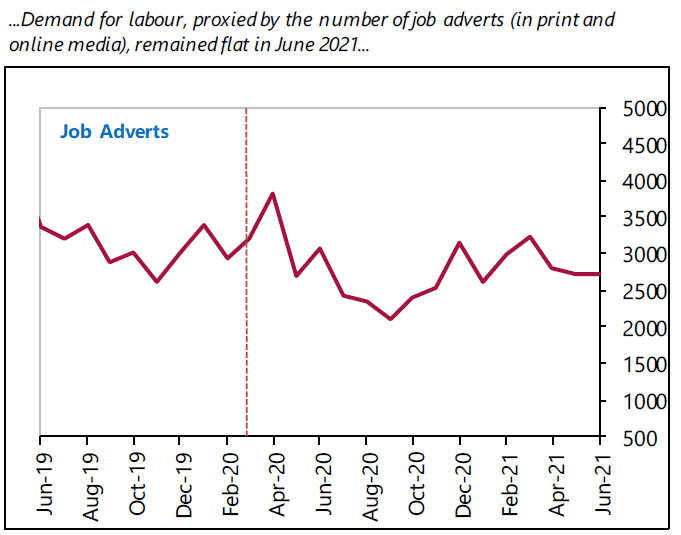 Cumulatively, 17,091 advertised jobs were recorded for the first two quarters of 2021, compared with 19,119 jobs advertised during the same period in 2020.