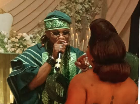 Clad in a majestic green African ‘Agbada’, the ‘Fear No Evil’ crooner invited Kayce on stage, who was also wearing a stunningly designed green outfit. He sang the song for her to further amplify the joy surrounding their union.