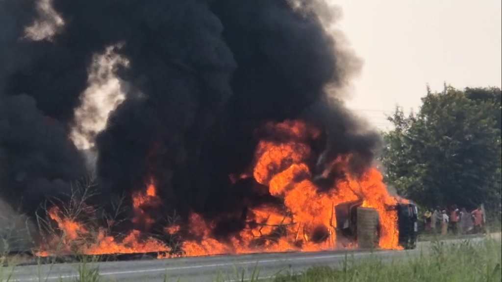 One eyewitness shared, “This morning while heading to work, I saw people gathered around the truck. Its tire had burst, and we noticed smoke coming out. Before we could get close, the truck burst into flames. Fortunately, the driver and his mate were taken to the hospital”.