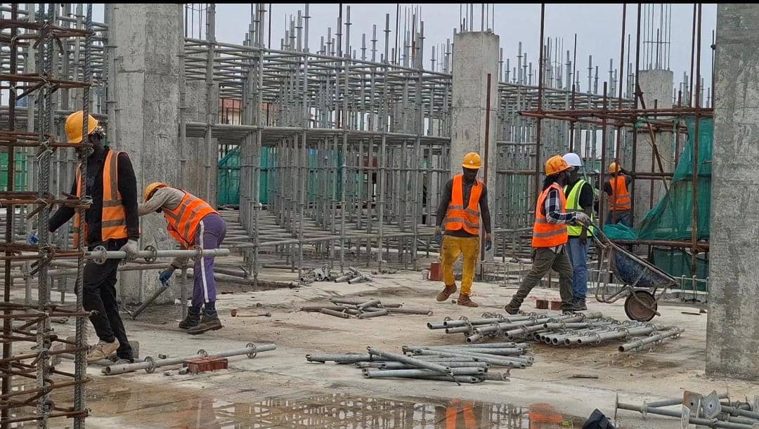 On the ground, progress was easy to spot. Scaffold pipes on the ground floor were being dismantled and transferred to the first floor as preparations continued for floor slabs and second-floor columns.