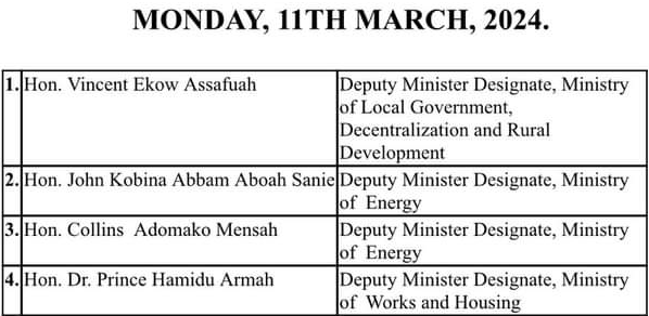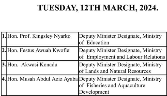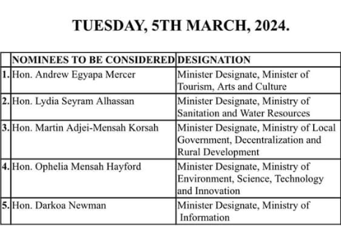 The Appointments Committee of Parliament is set to begin vetting ministerial nominees today, Tuesday, March 5, 2024.