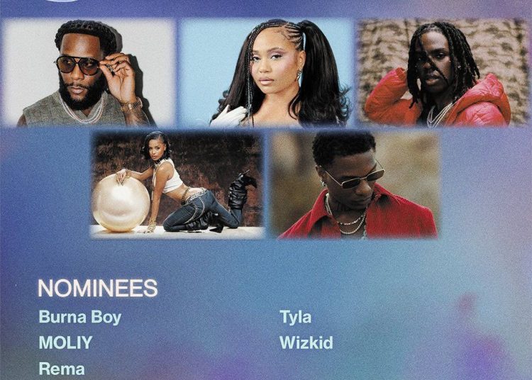 Moliy stands alongside some of Africa’s biggest musical exports including Tyla, Burna Boy, Wizkid, and Rema, a lineup that underscores the strength and global appeal of African music.