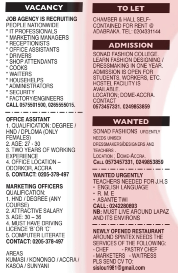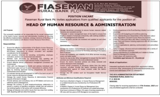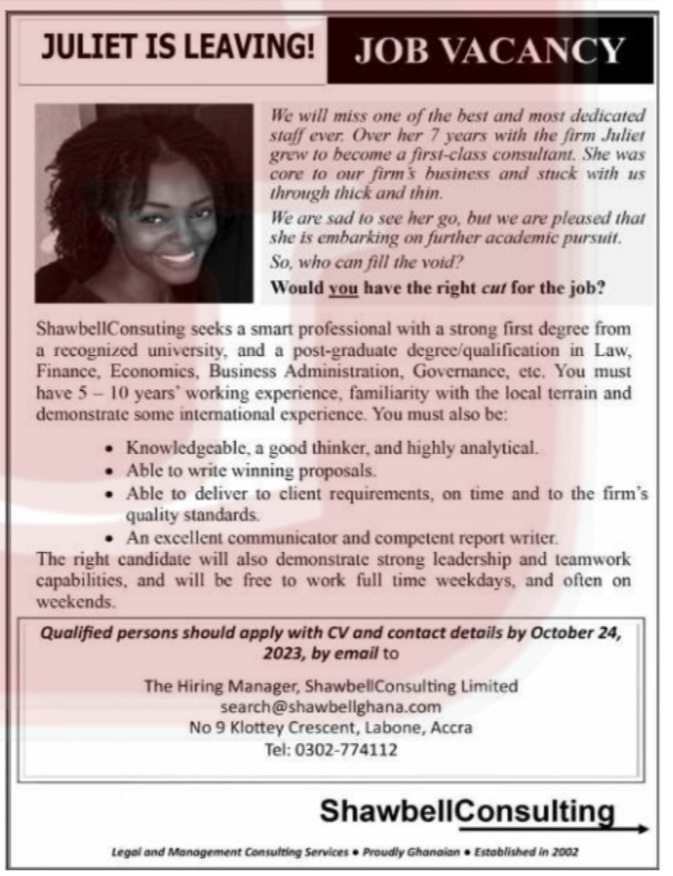 Prospective job seekers can find below the advertised jobs in the October 2, 2023, edition of Daily Graphic as published in the paper today.