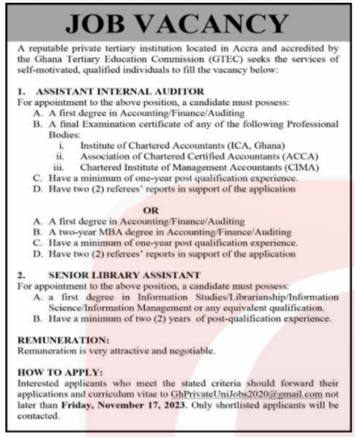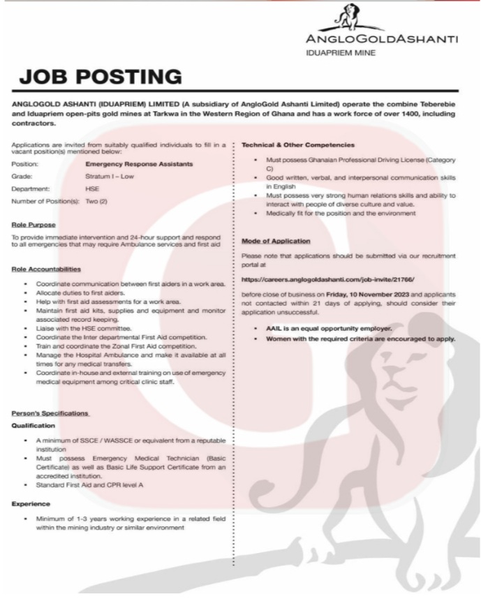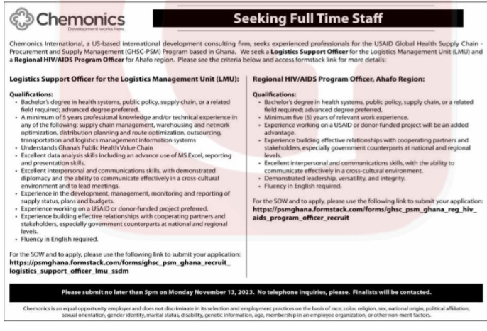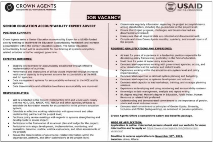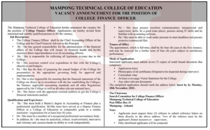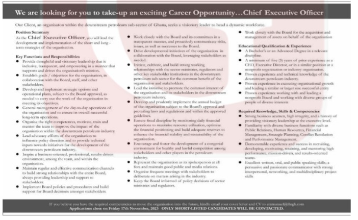 Prospective job seekers can find below the advertised jobs in the November 6, 2023, edition of Daily Graphic as published in the paper today.