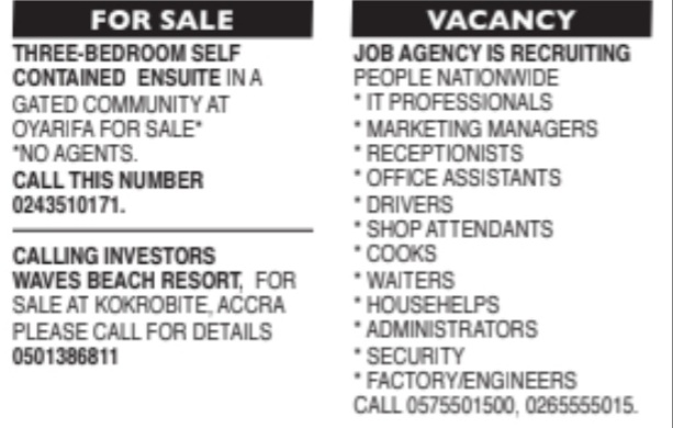 Prospective job seekers can find below the advertised jobs in the December 11, 2023, edition of Daily Graphic as published in the paper today.