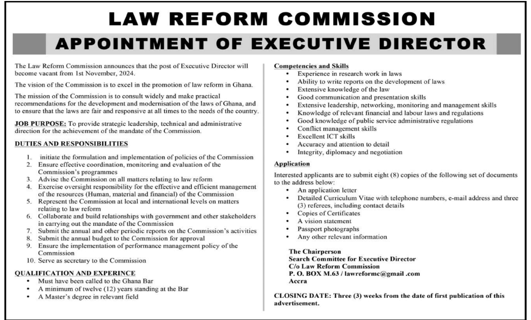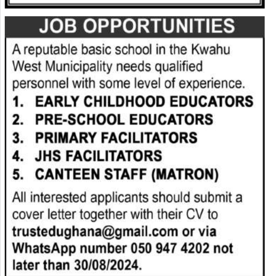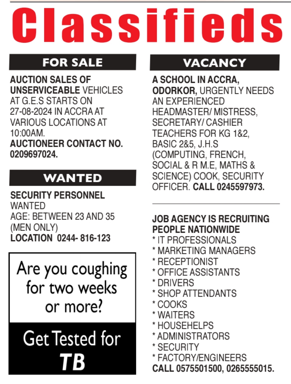Prospective job seekers can find below the advertised jobs in the August 26, 2024, edition of Daily Graphic as published in the paper today.