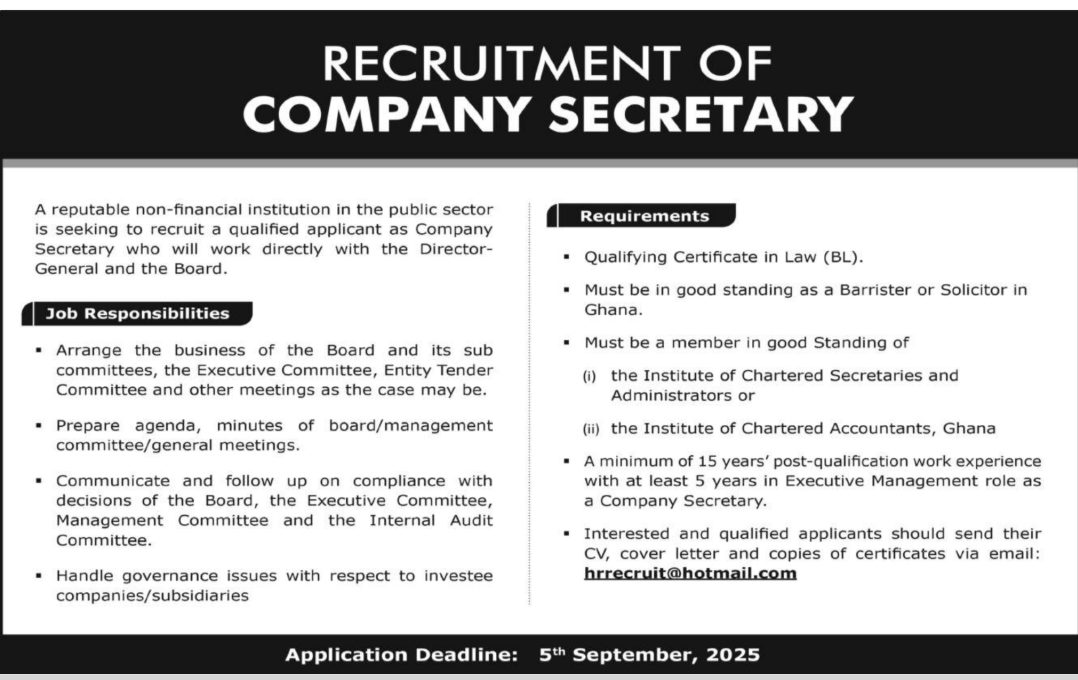 Prospective job seekers can find below the advertised jobs in the August 25, 2025, edition of the Daily Graphic as published in the paper today.