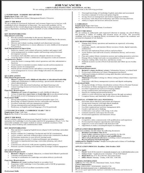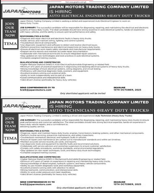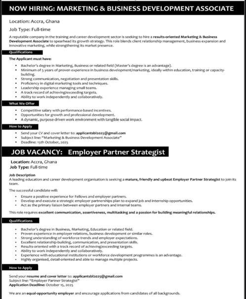 Prospective job seekers can find below the advertised jobs in the October 6, 2025, edition of the Daily Graphic as published in the paper today.