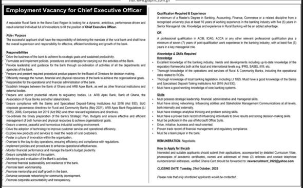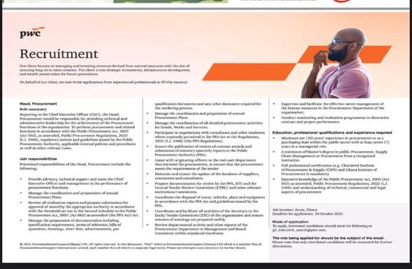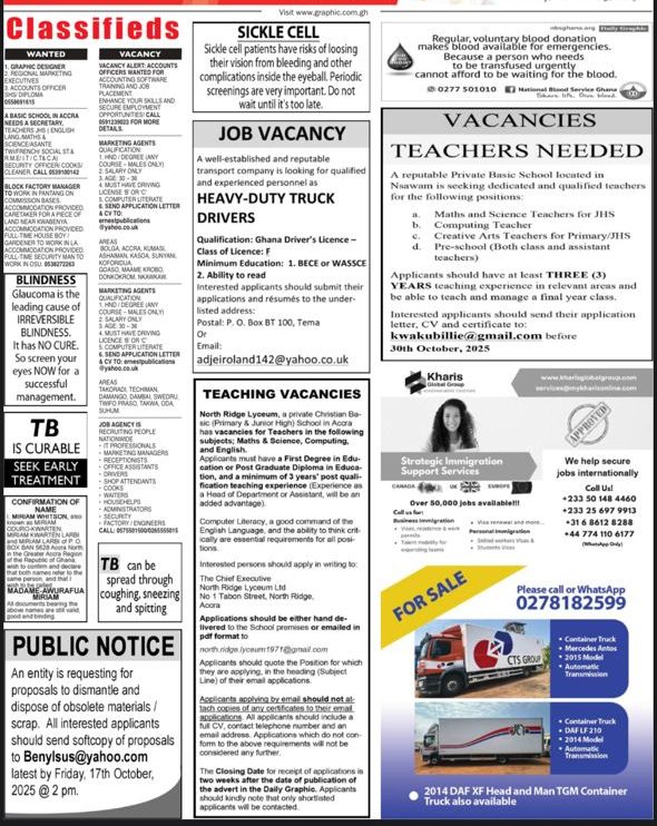 Prospective job seekers can find below the advertised jobs in the October 13, 2025, edition of the Daily Graphic as published in the paper today.