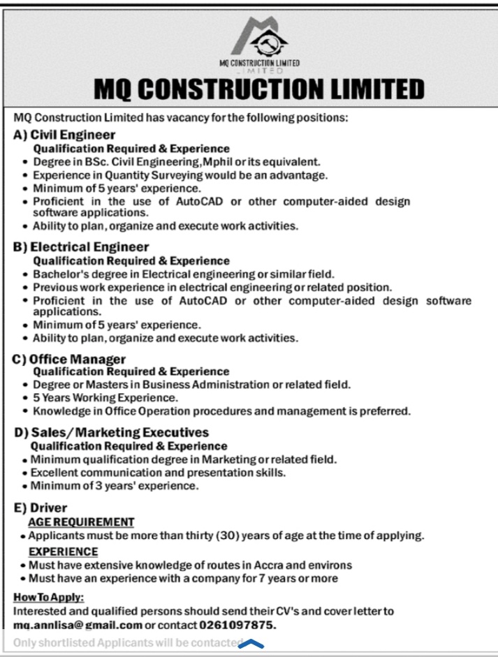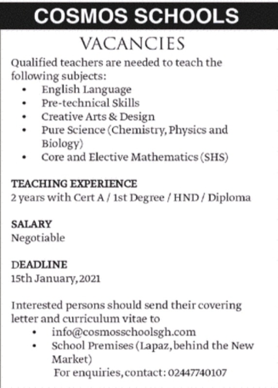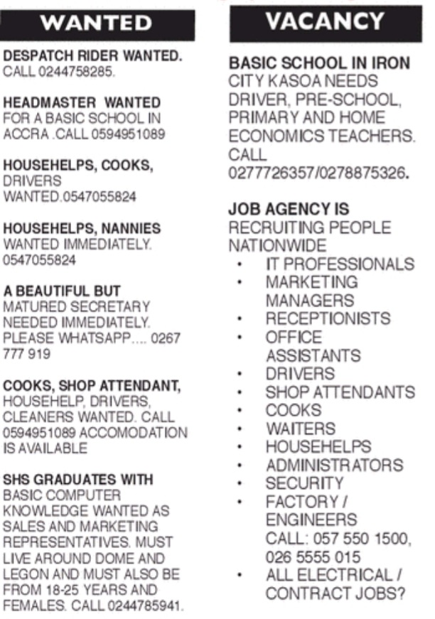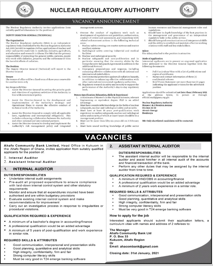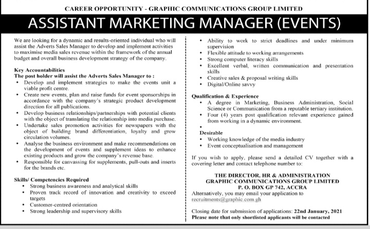 Prospective job seekers can find below the advertised jobs in the January 11, 2021, edition of Daily Graphic as published in the paper today.