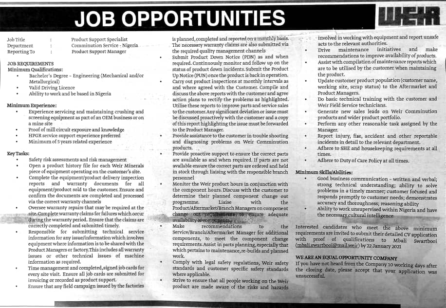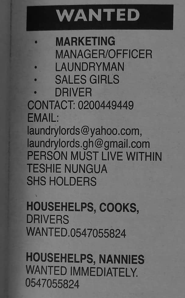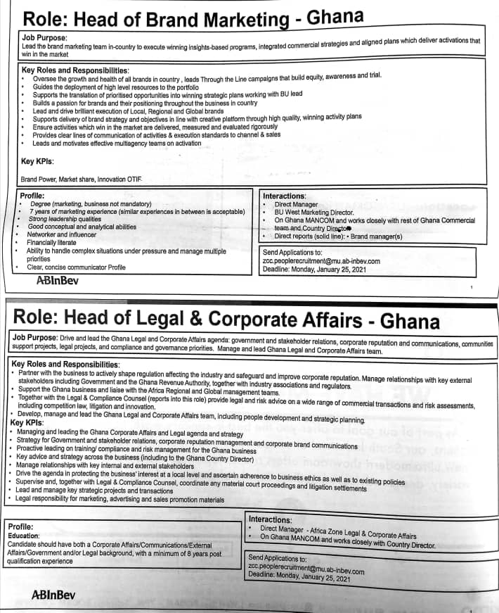 Prospective job seekers can find below the advertised jobs in the January 18, 2021, edition of Daily Graphic as published in the paper today.