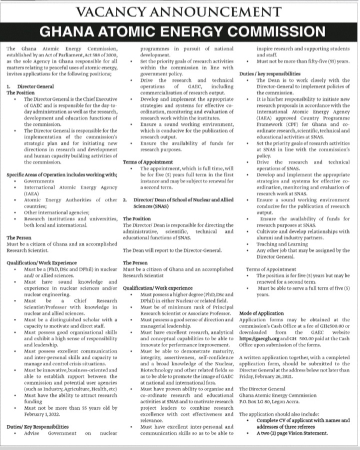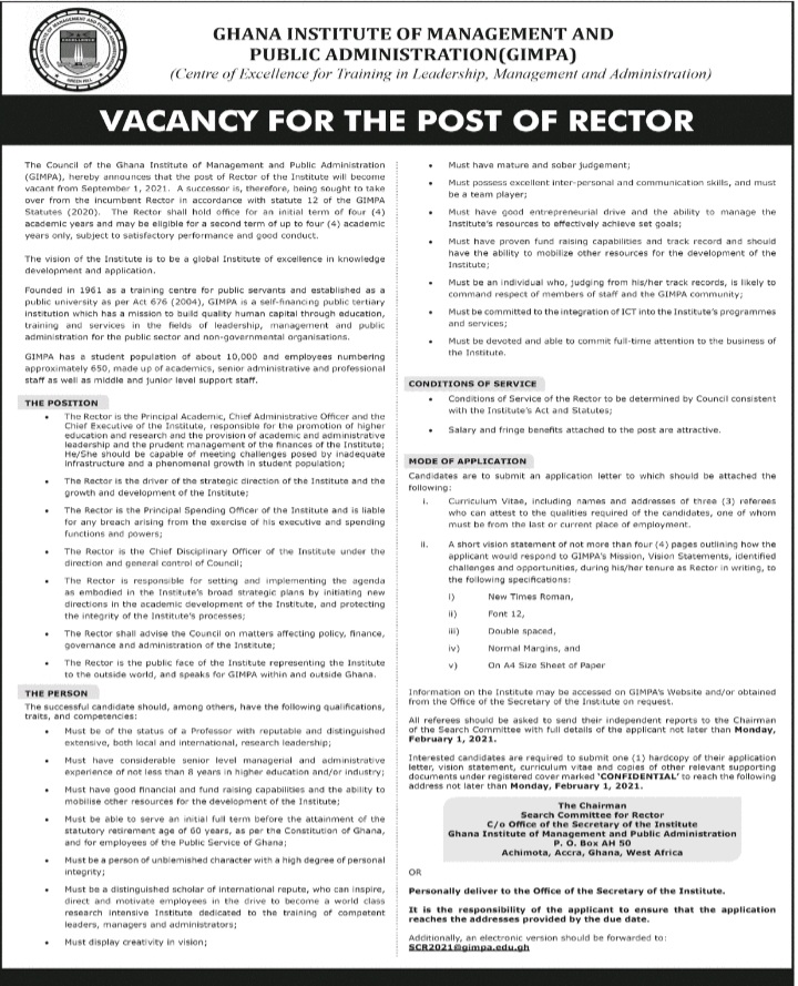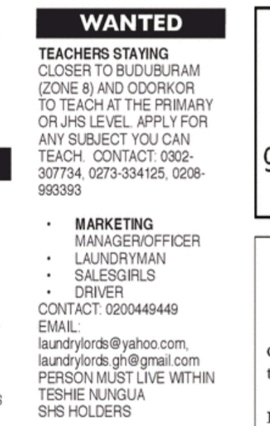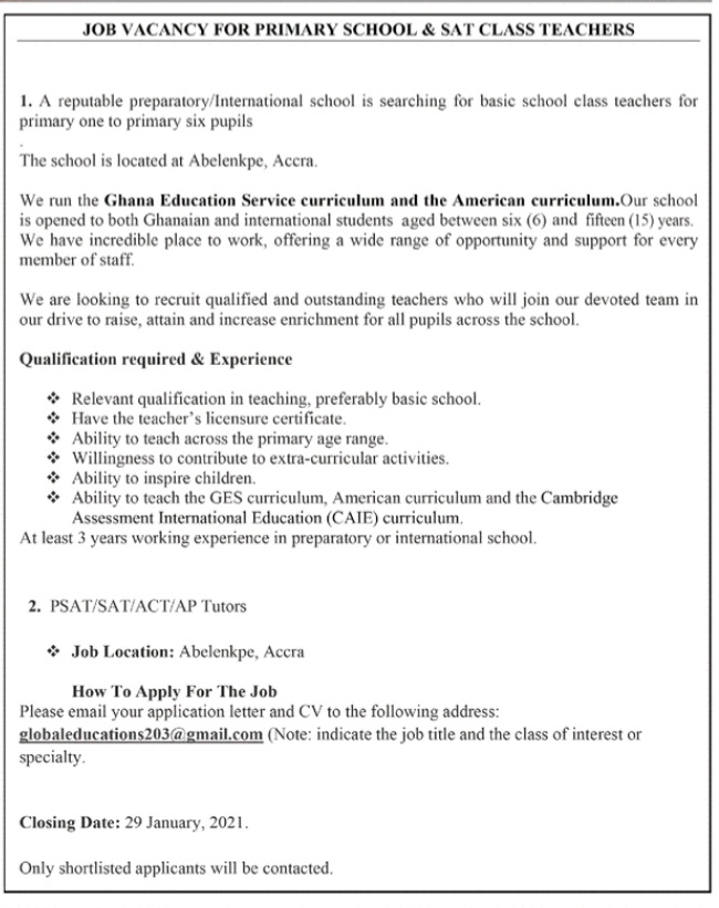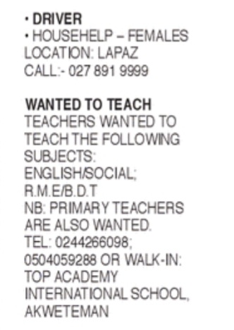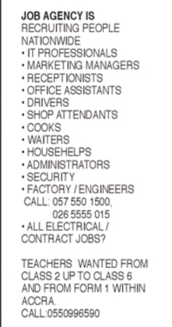 Prospective job seekers can find below the advertised jobs in the January 25, 2021, edition of Daily Graphic as published in the paper today.