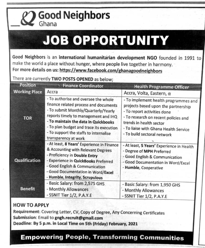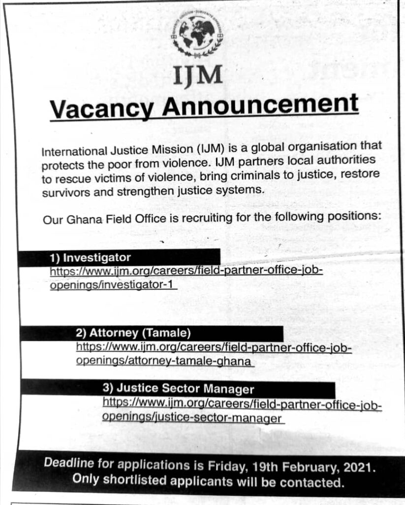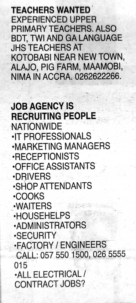 Prospective job seekers can find below the advertised jobs in the February 1, 2021, edition of Daily Graphic as published in the paper today.