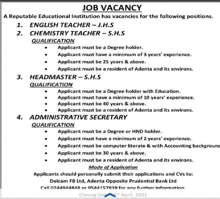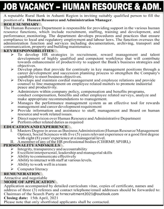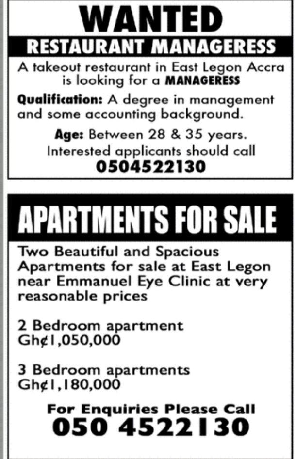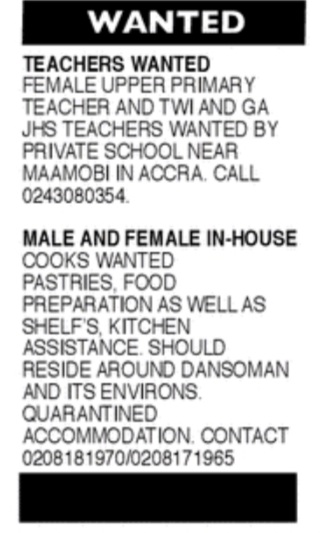 Prospective job seekers can find below the advertised jobs in the March 29, 2021, edition of Daily Graphic as published in the paper today.