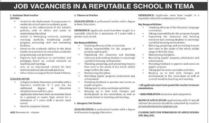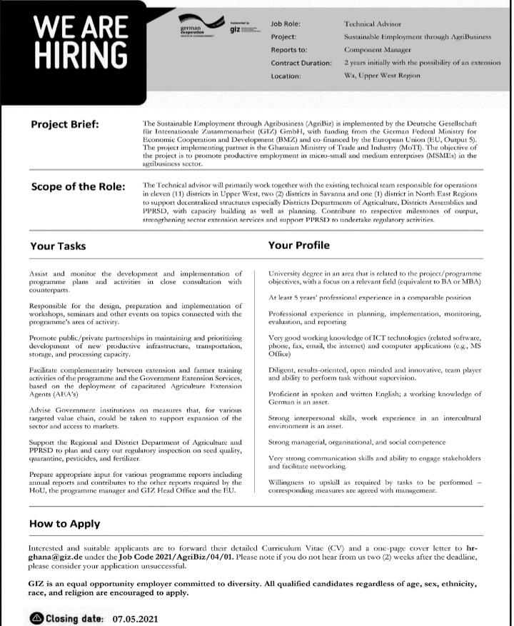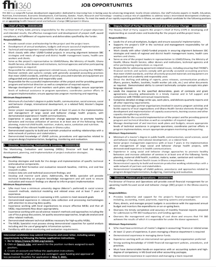 Prospective job seekers can find below the advertised jobs in the April 26, 2021, edition of Daily Graphic as published in the paper today.