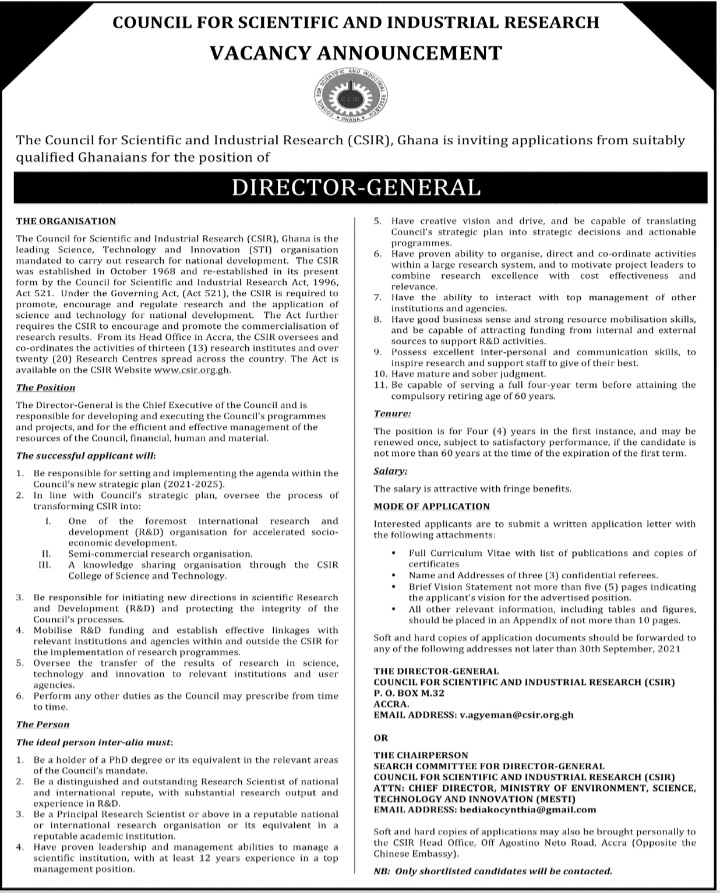Prospective job seekers can find below the advertised jobs in the September 6, 2021, edition of Daily Graphic as published in the paper today.