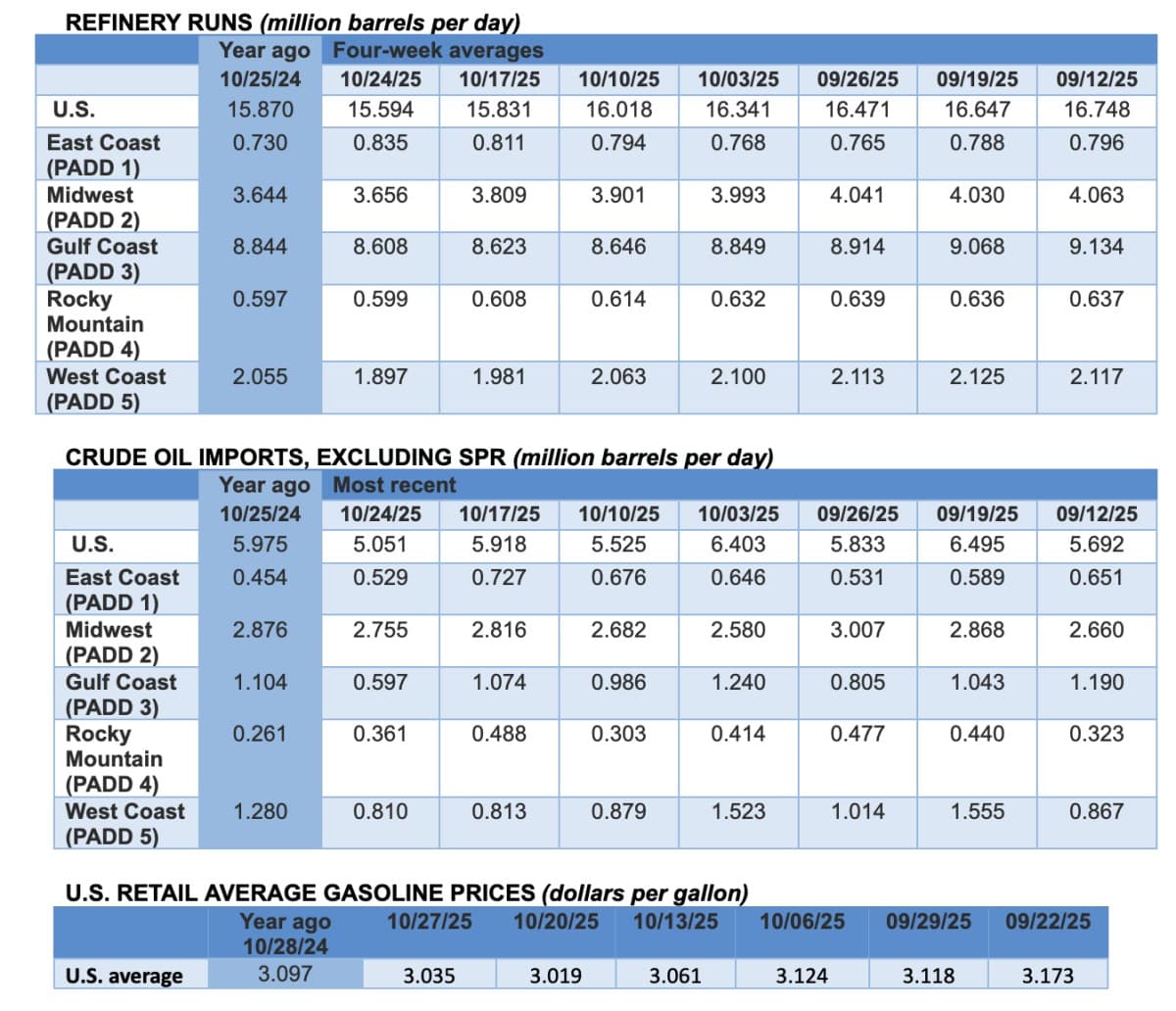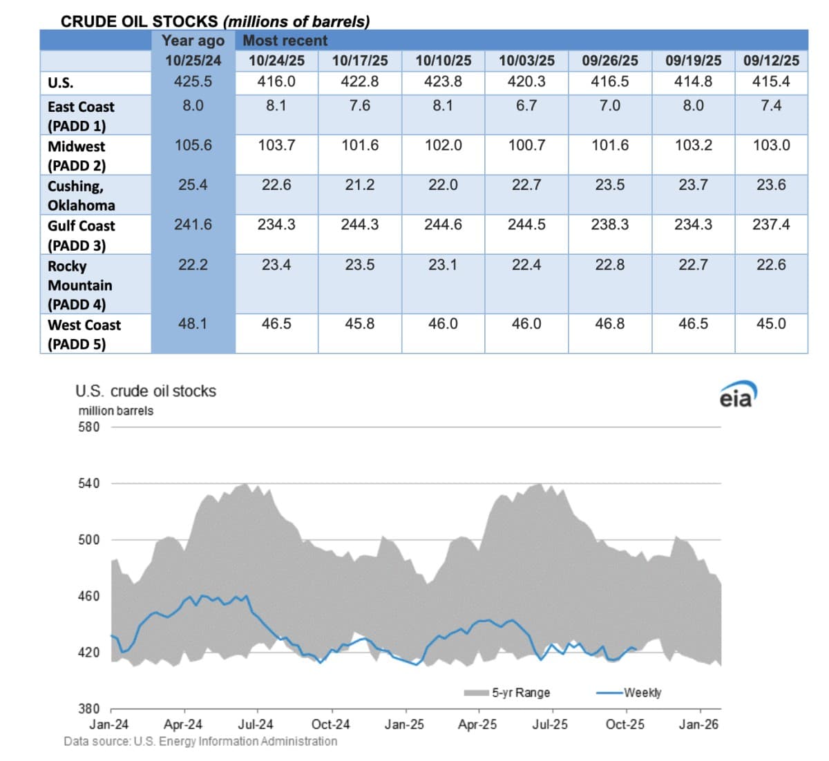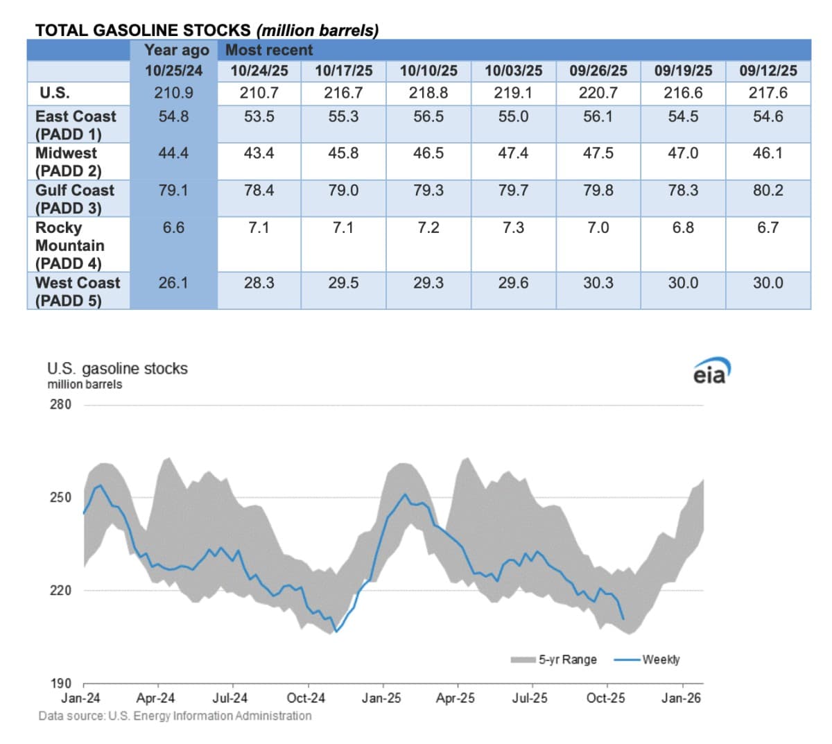 The Trump-Xi meeting in South Korea, frequently lauded as a potential icebreaker moment between the United States and China, failed to provide any momentum to oil markets as discussions centered more on fentanyl than crude oil or LNG. As such, this weekend’s OPEC+ meeting is the next trend-setting market for the market at large, even if this time around reports all seem to indicate the same outcome – a 137,000 b/d ‘modest’ increase. Thus, ICE Brent could linger around $65 per barrel for slightly longer.