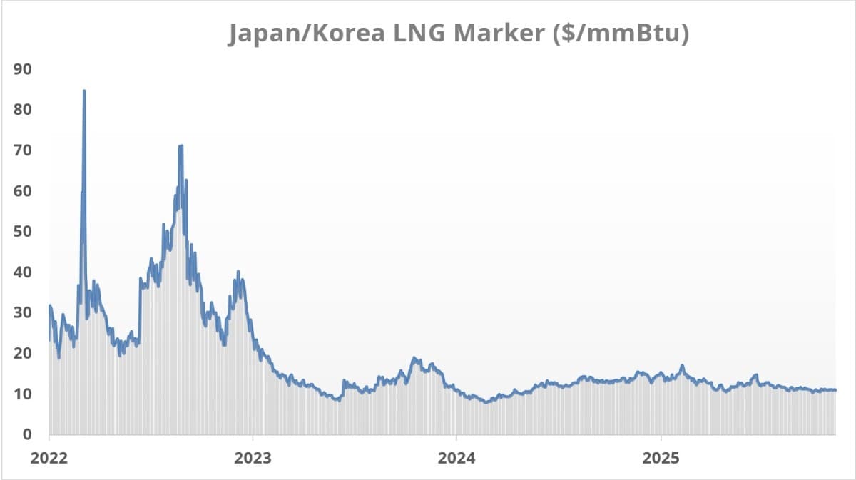 – This winter’s LNG markets are unlikely to replicate last year’s tightness as key Asian buyers have built up sufficient inventories ahead of Q4 2025 and have minimized spot purchases in October.