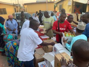 The items donated included 100 bags of Rice, cartons of Oil, bags of canned Tomatoes, bags of canned fish and mackerel ‘
