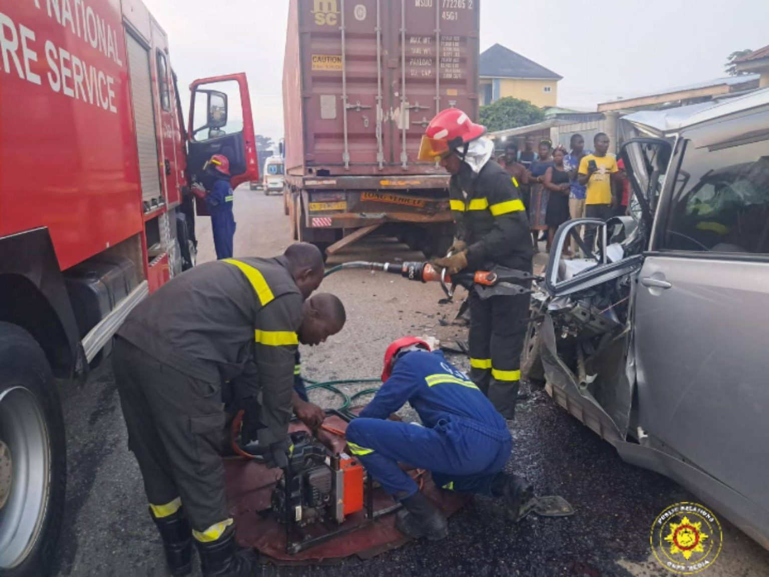 According to a Facebook post by the Ghana National Fire Service on Sunday, March 8, a six-member rescue team from the Suhum Municipal Fire Station, under the leadership of ADOII Ocansey Bright, arrived at the location to discover the Toyota Voxy severely impacted against the parked truck.
