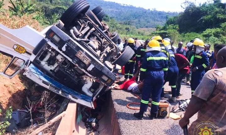 The victims were trapped in the Mercedes-Benz DAF cargo truck, which had lost control while negotiating a curve on Adukron Hill.