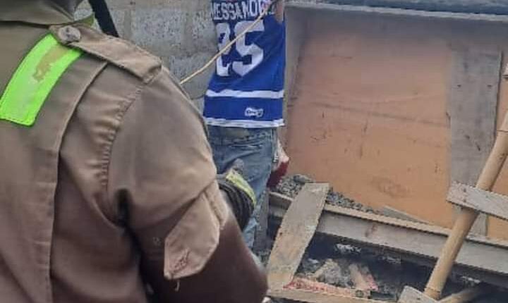 A statement from the GNFS said rescue efforts are ongoing to retrieve the trapped person.