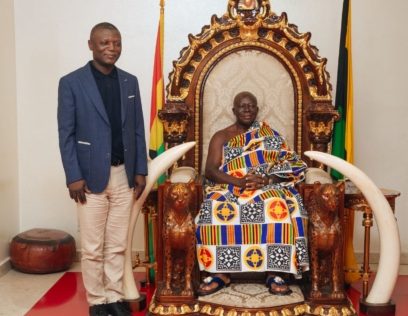 After a detailed inspection of the Baba Yara Sports Stadium and the stalled Nyinahin Youth Resource Centre, Hon. Kofi Iddie Adams, Minister for Sports and Recreation, paid a courtesy call on His Majesty Otumfuo Osei Tutu II at Manhyia Palace to brief him on the urgent works required at both projects.