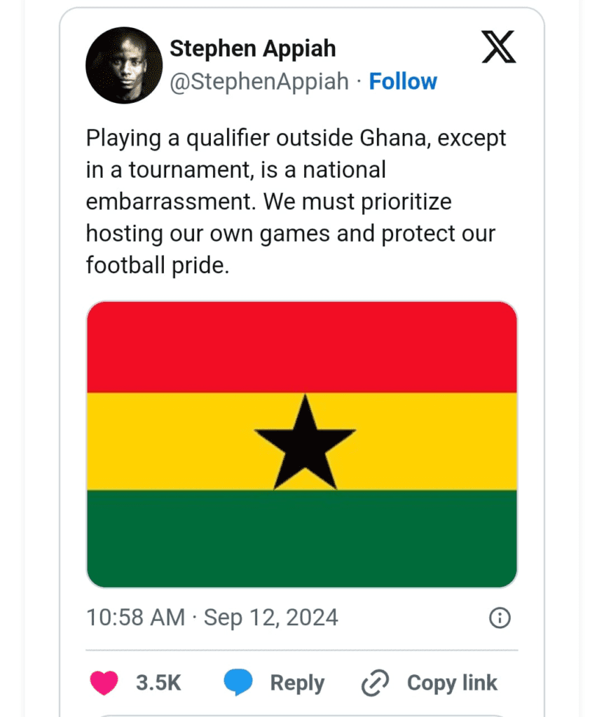 Appiah took to X (formerly Twitter) to share his opinion, emphasizing the importance of protecting Ghana’s national pride.