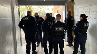 The officers sped up to a dilapidated block of flats in their vans as a youthful gang look-out on the gate promptly fled on foot. Splitting into two groups, the police ran up either side of the building seeking to catch dealers in the stairwells.
