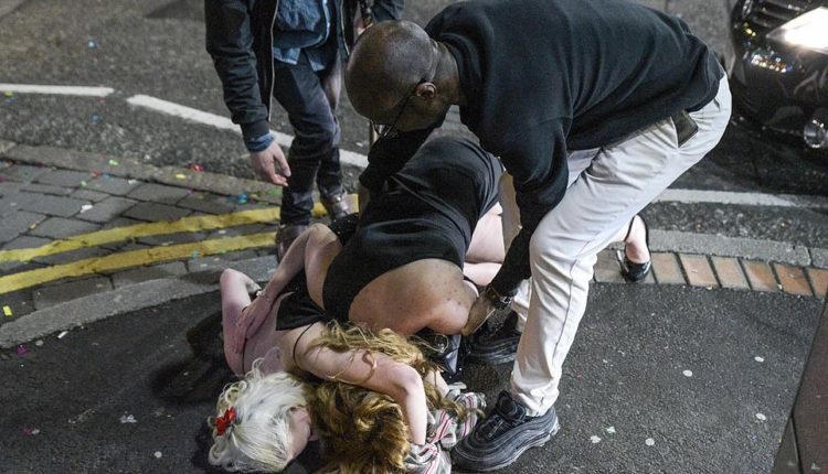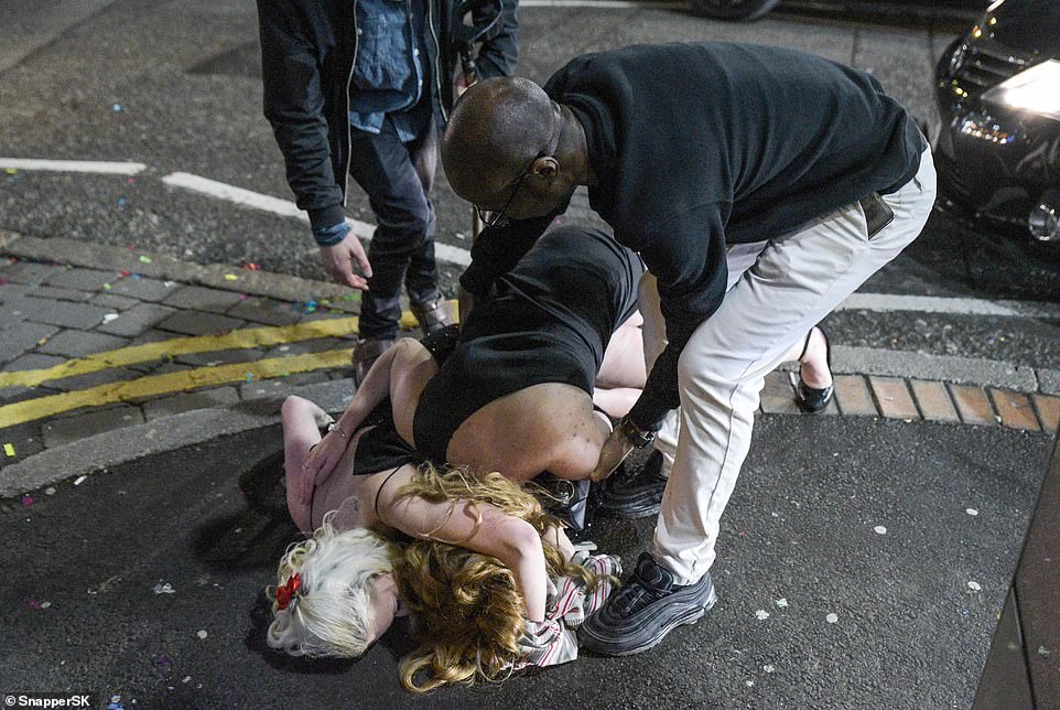 A sizeable minority had one too many drinks as people were seen vomiting, urinating in doorways, fighting each other or being carried to ambulances.