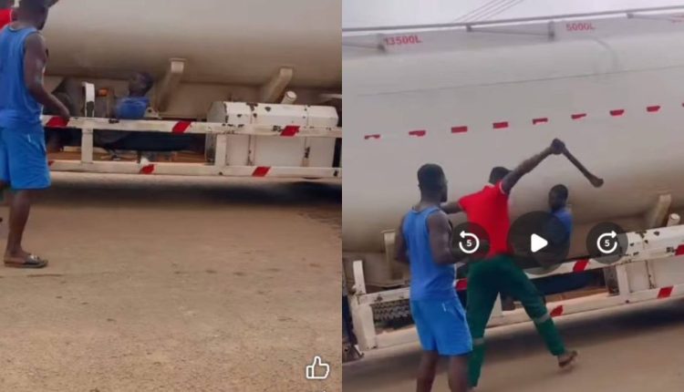 The suspect is accused of brutally attacking a young man with a machete near a fuel tanker, an incident that has been widely shared in a distressing video.