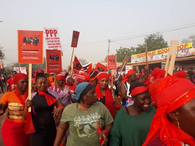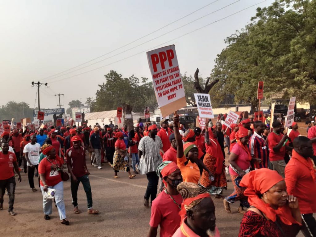 The aggrieved persons, clad in red attire, carried placards some of which read: “We need new President not new register”,” CPP says no new register”,” Jean Mensah your days are numbered”,” PPP must be strong to fight on the political front to give hope to many”.