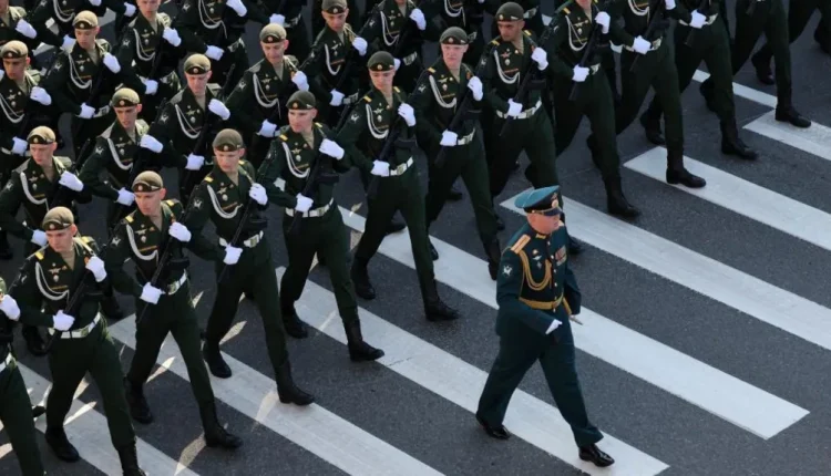 Before Putin’s address and a one-minute silence, the commander of ground troops, Oleg Salyukov, led 11,000 troops into Red Square, where they were inspected by Defence Minister Andrei Belousov.