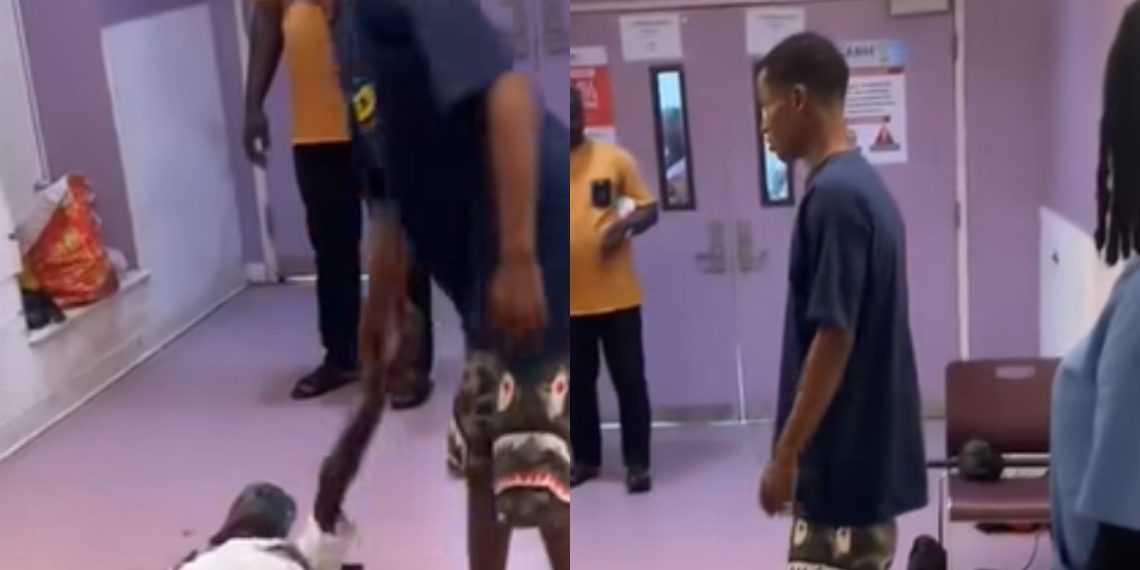 According to hospital officials, the security officer directed an 18-year-old visitor, Gabriel Dimson, who was with his mother and a friend, to relocate to the reception area, as it was not allowed to stand at the ward entrance outside of approved visiting hours.