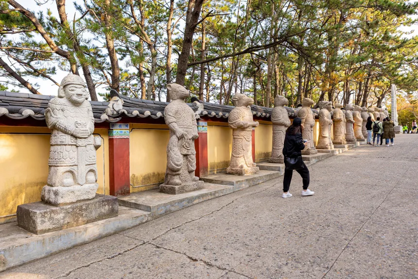 Originally, this temple was named Bomun, but its present-day moniker of Haedong Yonggungsa (Dragon Palace) came in 1974 when the head monk there reportedly had a vision of the goddess of mercy riding on the back of a dragon. Fittingly, there’s a sculpture of a bright blue dragon at the temple.