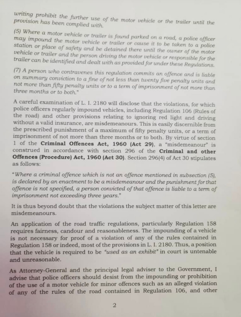 This is due to a surge in public complaints and legal concerns over the police’s practice of confiscating vehicles under the Road Traffic Regulations 2012 (L.I. 2180).