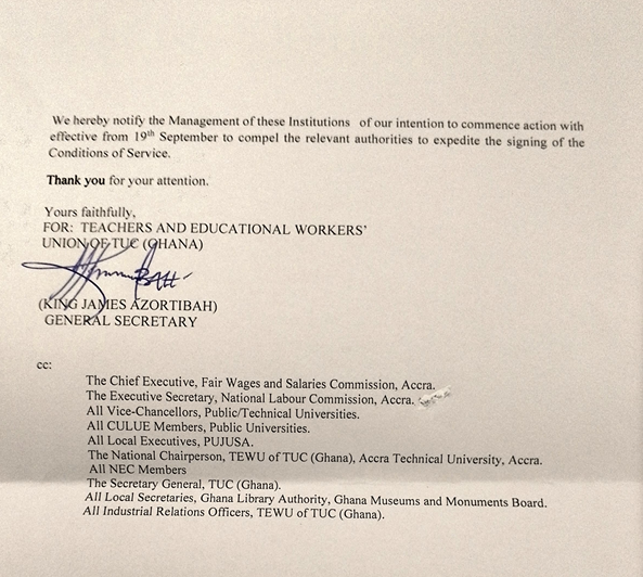 The strike will affect members in Technical and Public Universities, as well as those at the Ghana Library Authority and the Ghana Museums and Monuments Board (GMMB).