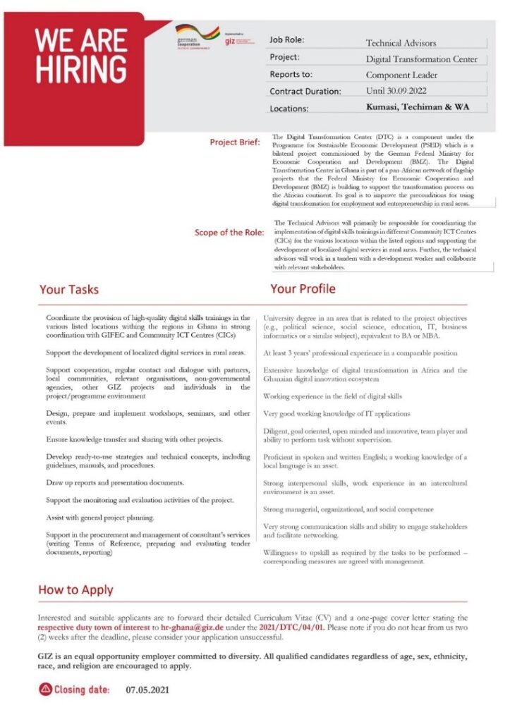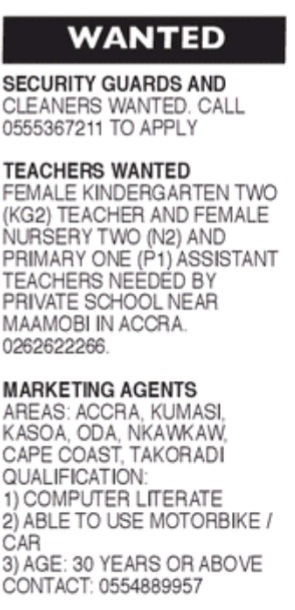 Prospective job seekers can find below the advertised jobs in the April 29, 2021, edition of Daily Graphic as published in the paper today.
