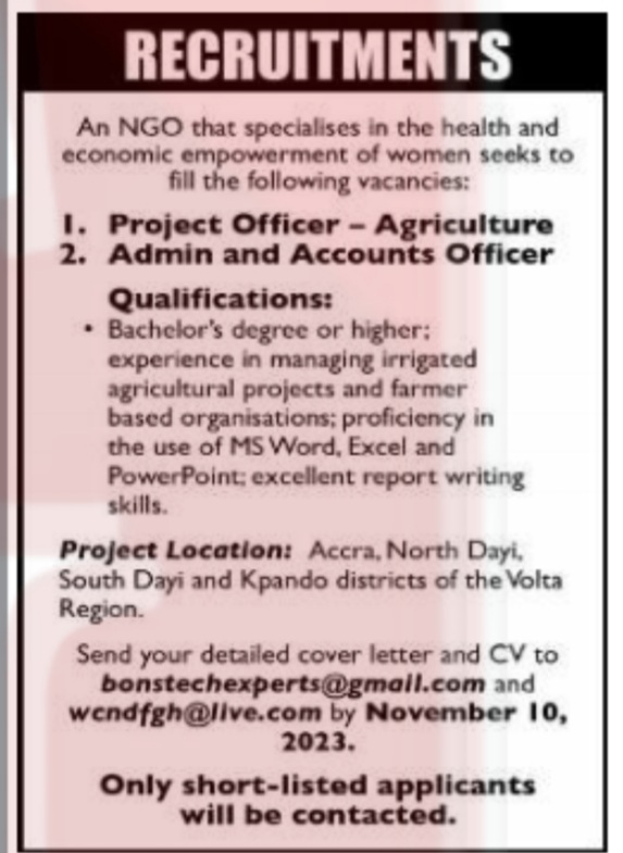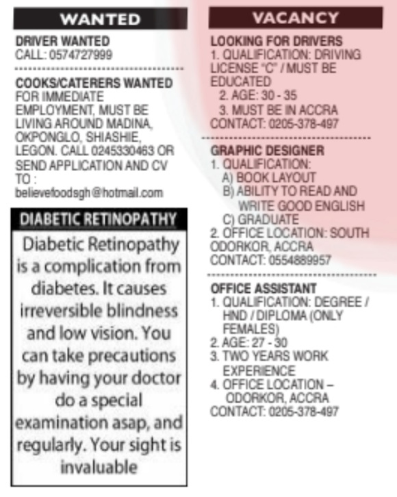 Prospective job seekers can find below the advertised jobs in the October 26, 2023, edition of Daily Graphic as published in the paper today.