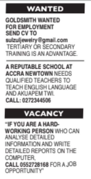 Prospective job seekers can find below the advertised jobs in the February 8, 2024, edition of Daily Graphic as published in the paper today.