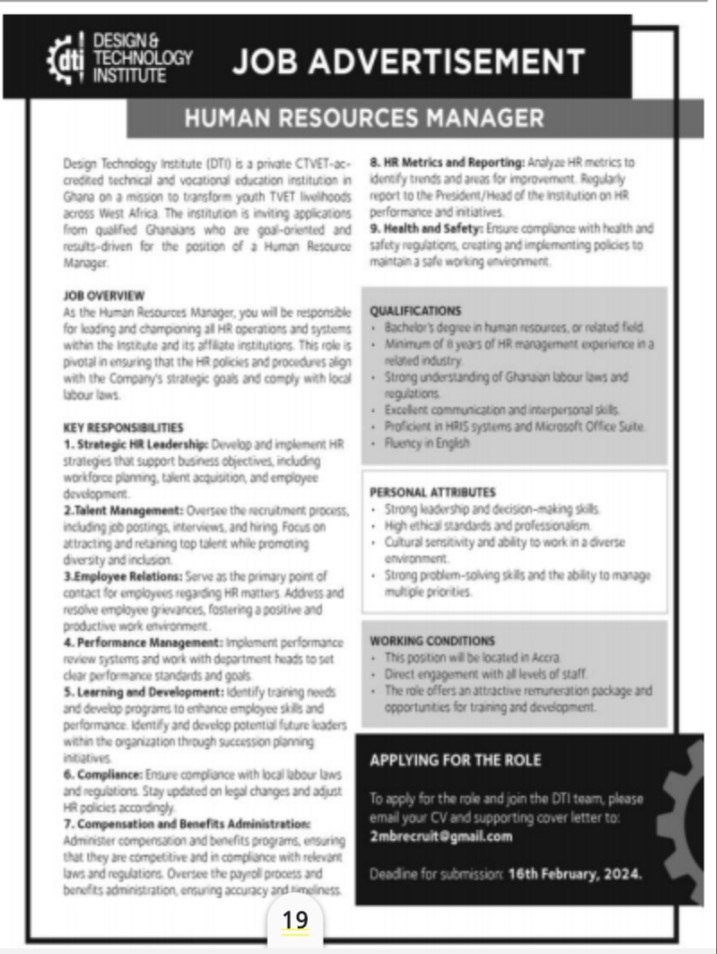 Prospective job seekers can find below the advertised jobs in the February 8, 2024, edition of Daily Graphic as published in the paper today.